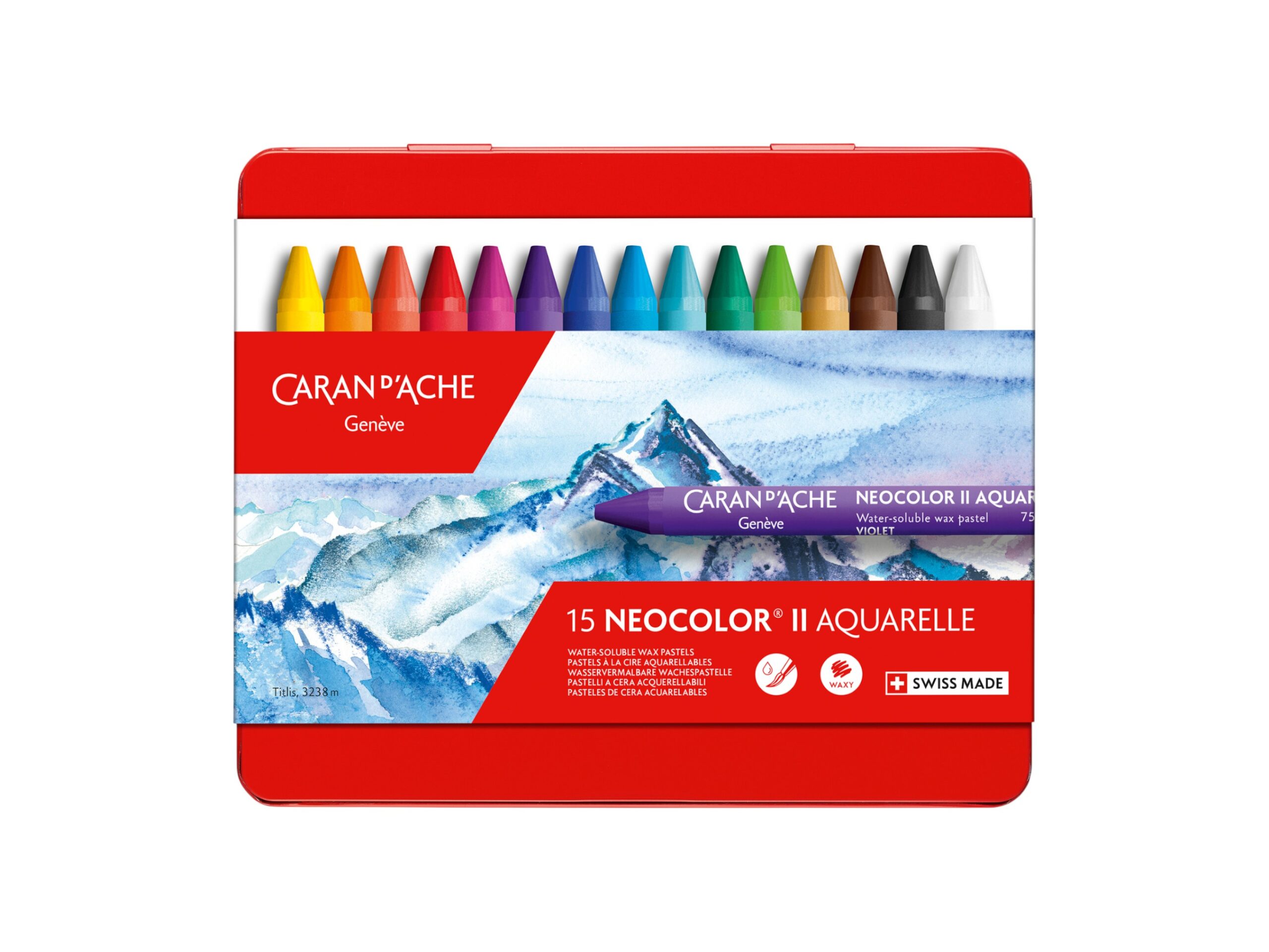 Pasteles de cera acuarelables Neocolor II Caran D´Ache caja de metal con 15 piezas